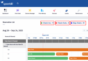 Having quick access to daily reservations is essential for smooth hotel operations. In Spoonbill PMS, you can see today’s check-ins, stayovers, and check-outs instantly with just one click, saving time and helping staff stay organized throughout the day.